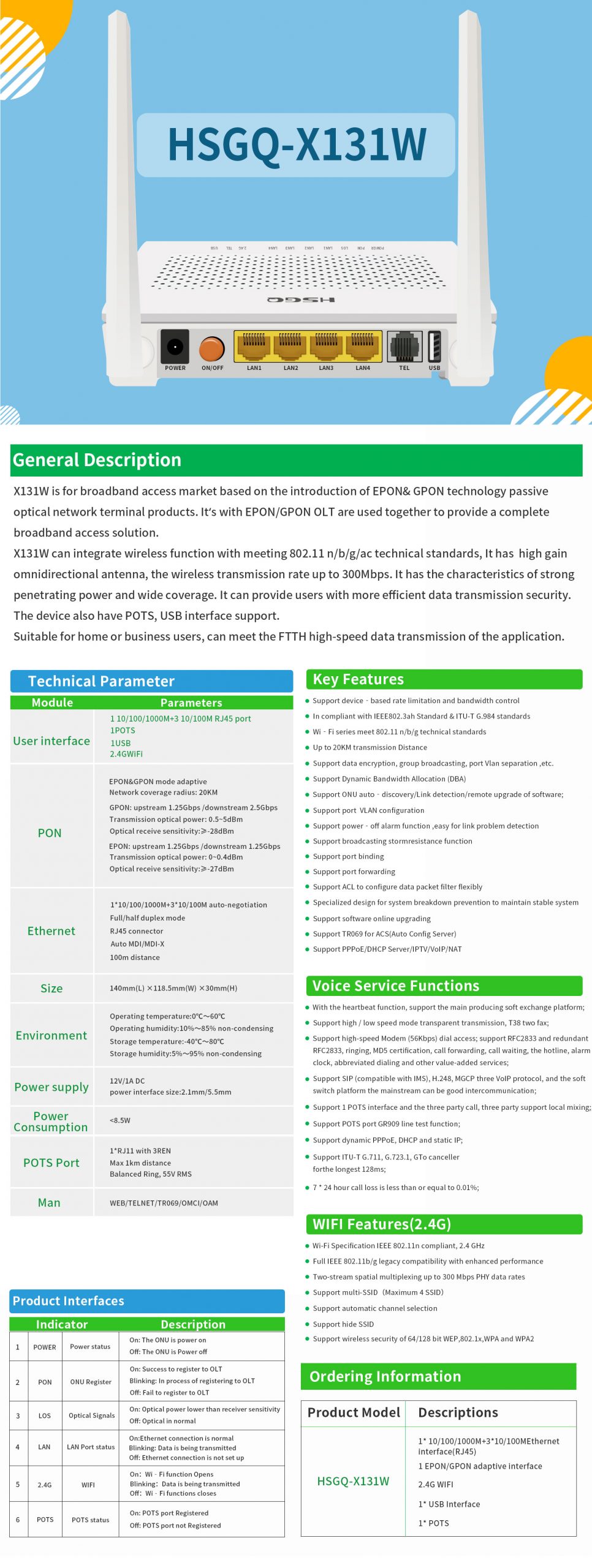 HSGQ-X131W 1GE+3FE+WIFI+1VOIP+1USB