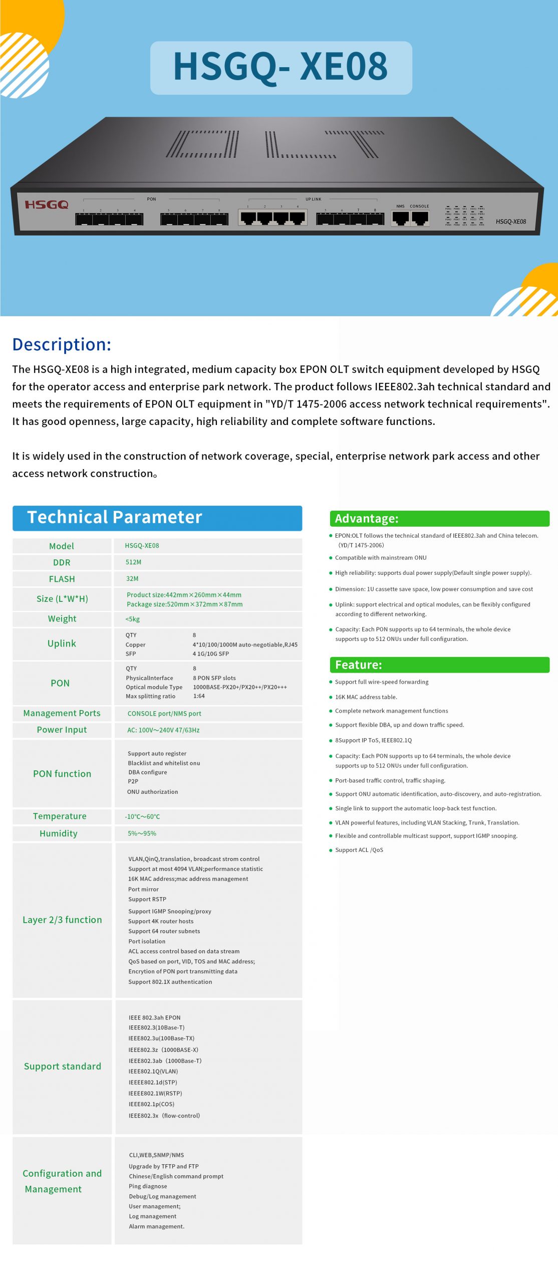 XE08 OLT specification